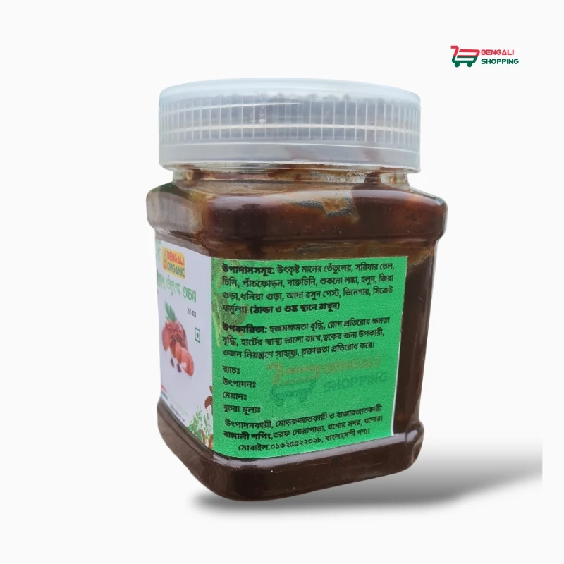 এর সঙ্গে রক্তচাপ নিয়ন্ত্রণেও সাহায্য করে, শরীরের অতিরিক্ত টক্সিন দূর করে এবং শরীরকে সতেজ ও প্রাণবন্ত রাখে। ঘরে তৈরি হওয়ায় এটি বাজারের সাধারণ আচারগুলোর তুলনায় অনেক বেশি স্বাস্থ্যকর এবং নিরাপদ।